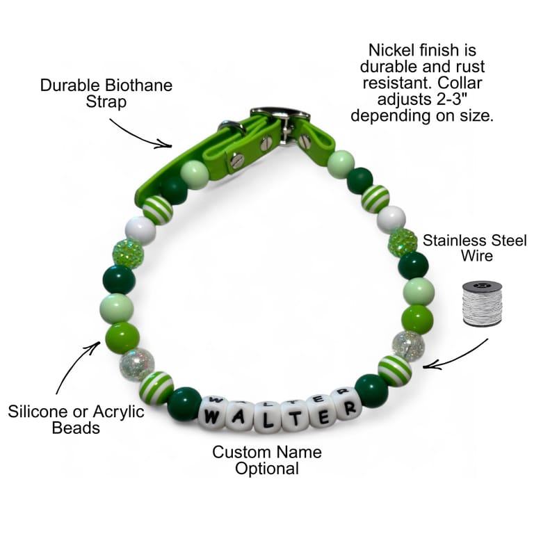 Each collar is handmade so beads may slightly vary. Please contact us with specific requests.